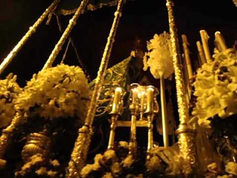 La Banda de Música "Agrupación Musical Manuel Garín" de Linares, acompañando a la Virgen de la Esperanza de La Carolina (Jaén) en la noche del Jueves Santo de 2015 e interpretando